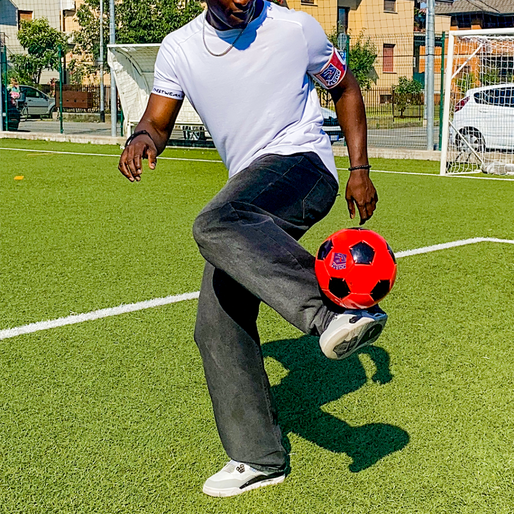 Die Kapitänsbinden, Schienbeinschoner, Bälle und T-Shirts können mit Hilfe unseres Grafikservices vollständig individuell gestaltet werden. Ein erfahrener Grafikdesigner arbeitet mit Ihnen zusammen, um Ad-hoc-Grafiken aus den bei der Bestellung angegebenen grafischen Elementen zu erstellen. So ist ein Ergebnis garantiert, das die Identität Ihres Teams voll und ganz widerspiegelt. Sie können Ihre Produktgrafiken auch über unseren Online-Konfigurator zusammenstellen.