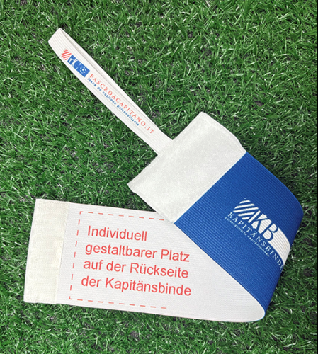 Bei kapitansbinden.de haben Sie die Möglichkeit, sowohl die Vorderseite als auch die Rückseite des Bandes individuell zu gestalten, was es wirklich einzigartig macht. Fügen Sie Phrasen, Zahlen, Logos und Zitate ein, die Ihnen wichtig sind. Die Gestaltung der Rückseite der Kapitänsbinde gibt Ihnen die Möglichkeit, eine exklusive Note hinzuzufügen, die die Grafik bereichert und vervollständigt.